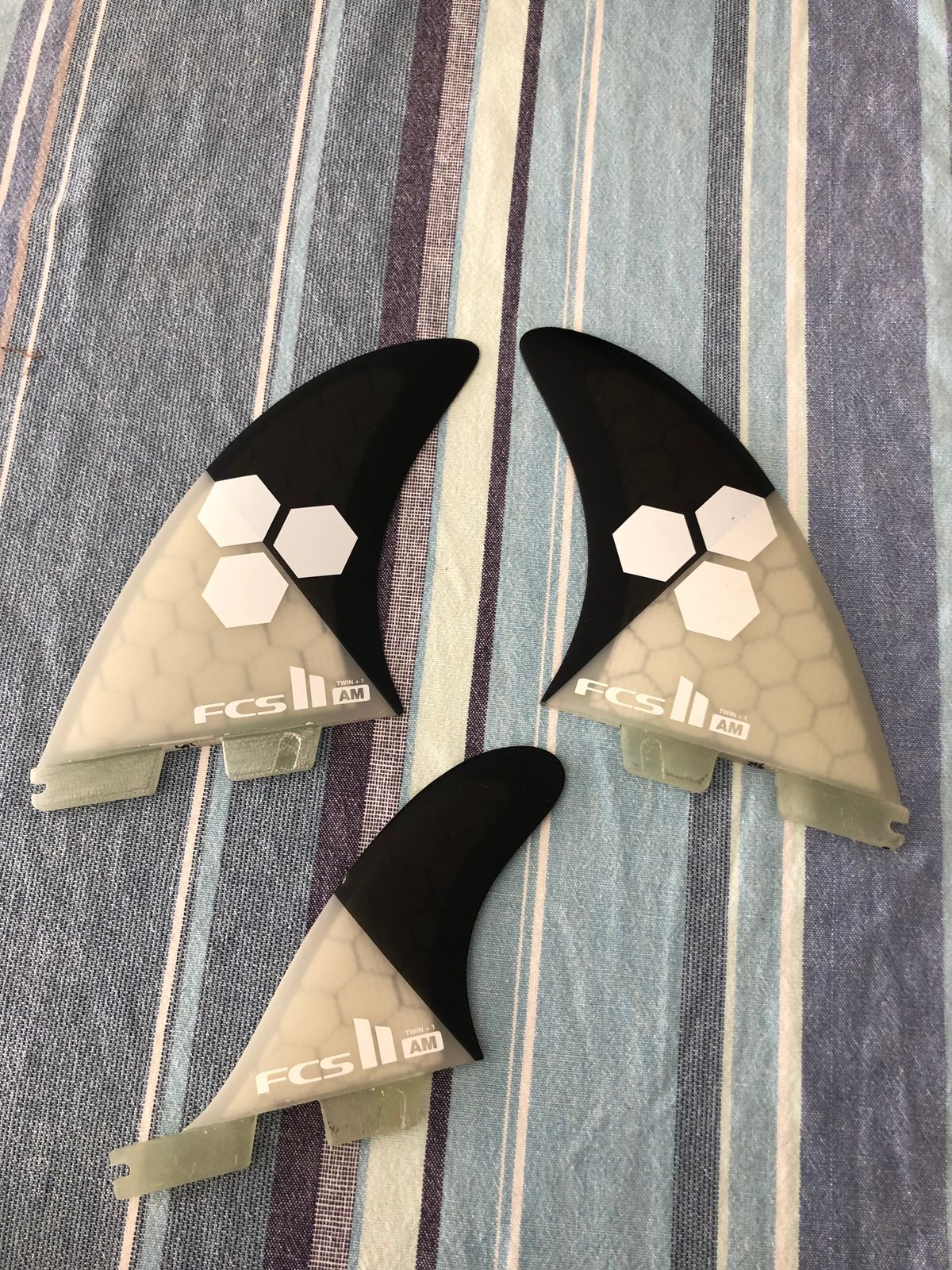 Replacement fins for FCS II Al Merrick PC Twin+1 sets.